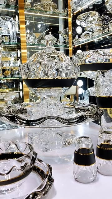 سرویس کریستال کن کن مشکی طلایی